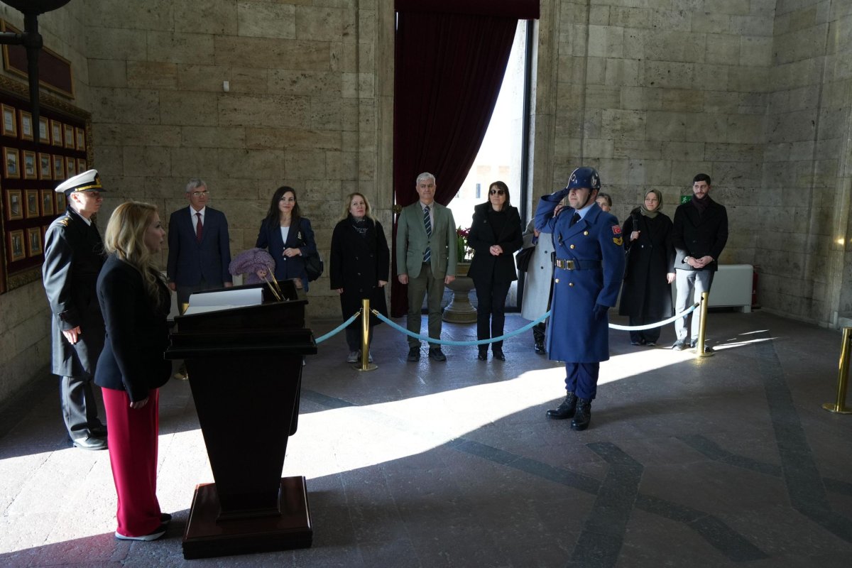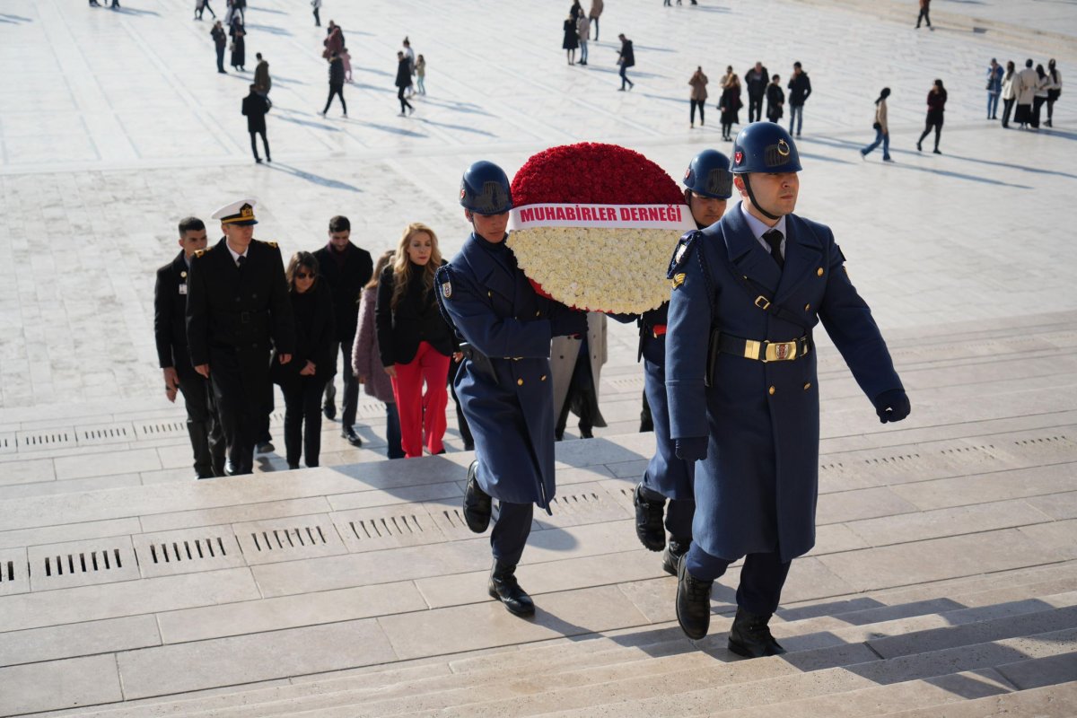 Muhabirler Derneği Başkanı Berrin Yücesan ve beraberindeki heyet, Anıtkabir’i ziyaret etti. Atatürk’ün mozolesine çelenk bırakılmasının ardından saygı duruşunda bulunuldu. Anıtkabir merdivenlerinde hatıra fotoğrafı çektiren heyet, Anıtkabir Özel Defteri’ni imzalamak üzere Misak-ı Milli Kulesi’ne geçti. Muhabirler Derneği adına defteri imzalayan Yücesan, deftere şunları yazdı: “Sevgili Atam bugün huzurunda bulunmaktan büyük mutluluk duyuyorum. Bizler mesleğimizi en güçlü ve ilkelerimiz doğrultusunda her daim yapacağız. Türkiye Cumhuriyeti'nin birer ferdi olarak mesleğimizin sorumluluklarının farkındayız. Sorumluluk bilinciyle mesleğimizi sürdüreceğiz"